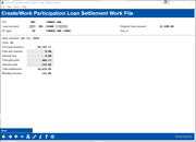 Access this screen by selecting a loan account from Create/Work Participation Loan Settlement Work File.