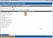Recent legislation in some states has required the charging of sales tax on certain services. Use this screen to configure the parameters for charging sales tax on the services listed on this screen.