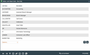 This screen is presented when you are making a selection for Employee Profile screen, including authorized vaults, branches (to exclude), and Corp ID (to exclude) for the selected employee. You may need to use the up and down arrow to view all items.