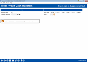 These screens are used to record the transfer of bulk cash from a branch vault to a supplemental vault as selected on the previous screen.