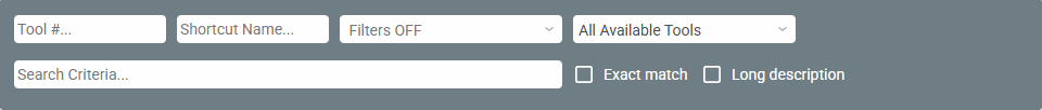 Enter a word or word phrase in the Search for field. Search by tool number, shortcut, the tool description (partial or full wording), or program calls.
