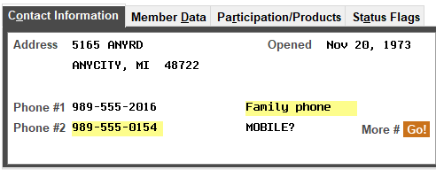 On screens that display membership information such as via Inquiry and Phone Operator, you’ll generally see the first two numbers, in sequential order, from the member’s contact list.